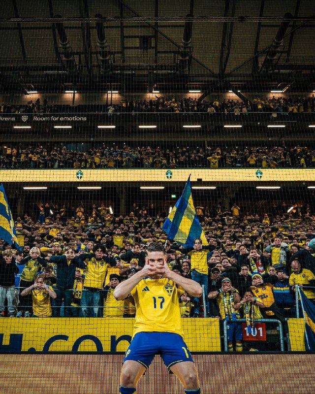 🥶🇸🇪| صورة العام بلا شك، فيكتور يوكيريس يتأهل مع بلاده إلى كأس العالم وجميع المشجعين وراءه يقلدون احتفاله.