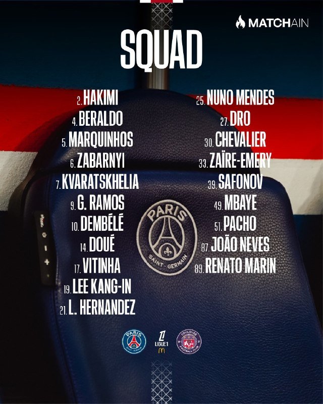 🚨🚨⚽️ • قائمة باريس سان جيرمان المستدعاة لمواجهة تولوز اليوم.