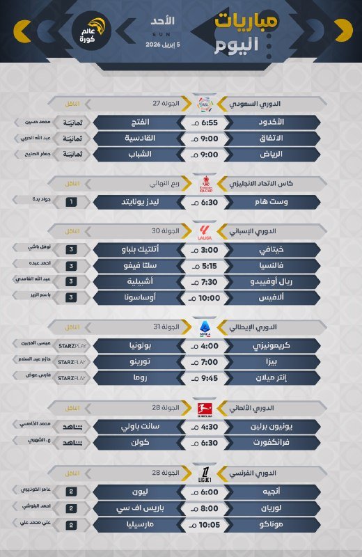 جميع المباريات بتوقيت 🇸🇦
