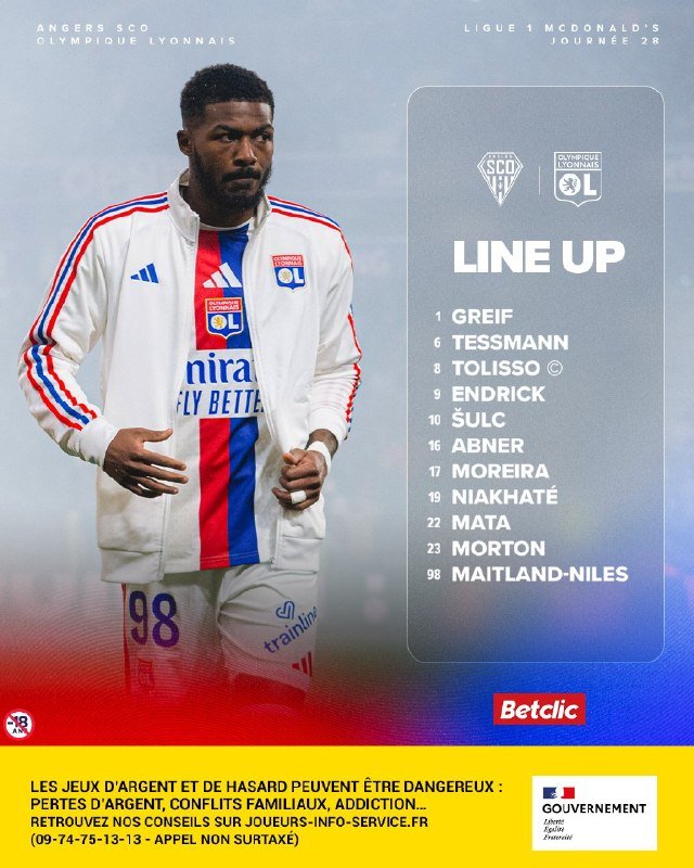 🚨🚨⚽️ • تشكيلة أولمبيك ليون الرسمية لمواجهة أنجيه.