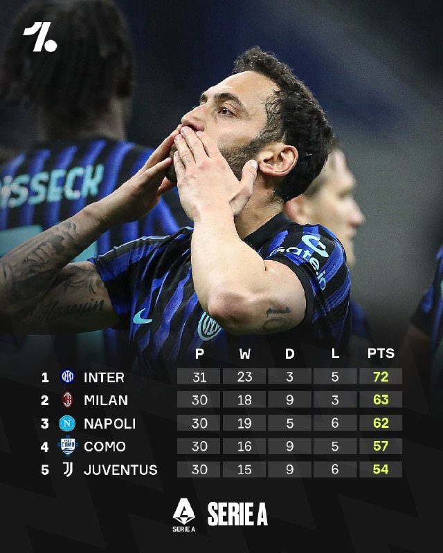 🚨🚨🇮🇹 | ترتيب الكالتشيو بعد نهاية المباراة، إنتر في الصدارة حاليًا بفارق 9 نقاط عن إيه سي ميلان. 🚨⚽️ | نهاية المُباراة [الدوري الإيطالي – الجولة الحادية والثلاثون]: • [⚽️] إنتر ميلان 5-2 روما [⚽️] 🤩⚽️ لاوتارو مارتينيز 🅰️ ماركوس تورام. 🤩⚽️ هاكان تشالهان أوغلو 🅰️ بيوتر زيلينسكي. 🤩⚽️ لاوتارو مارتينيز 🅰️ ماركوس تورام. 🤩⚽️ ماركوس تورام 🅰️ هاكان تشالهان… تصفّح المقالات | نهاية المُباراة [الدوري الإيطالي – الجولة الحادية والثلاثون]:• [] إنتر ميلان …| ماركوس تورام رجل المباراة! | نهاية المُباراة [الدوري الإيطالي – الجولة الحاد…