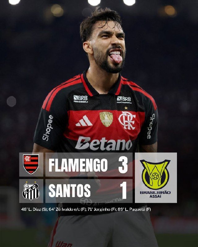 🇧🇷| سانتوس يتعثر أمام فلامنغو بدون نيمار، ويقترب أكثر من مراكز الهبوط.