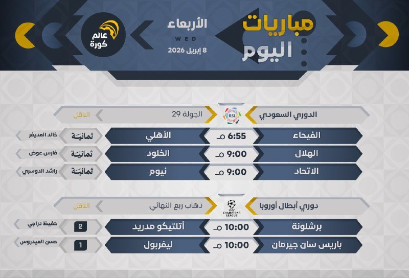 جميع المباريات بتوقيت 🇸🇦