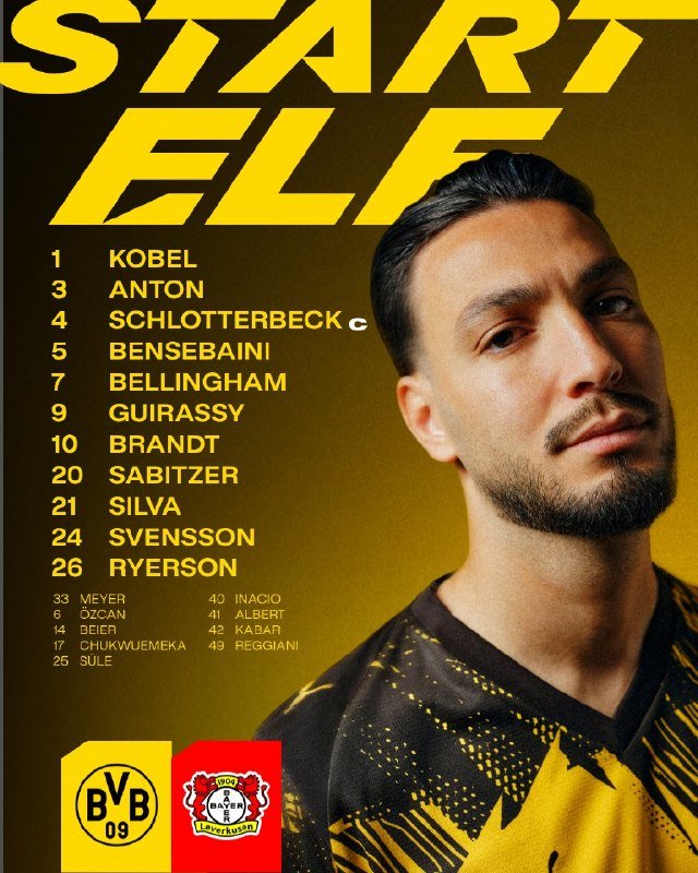 • تشكيلة بوروسيا دورتموند الرسمية لمواجهة باير ليفركوزن.