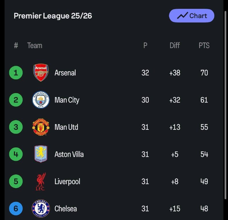 🚨🚨⚽️| إذا فاز مانشستر سيتي في مباراتيه المتبقيتين، سيقلص الفارق مع آرسنال إلى ثلاث نقاط.وإذا فاز على آرسنال، فسيتصدر البريميرليغ بفارق الأهداف! تصفّح المقالات | نهاية الشوط الأول [الدوري الإنجليزي – الجولة الثانية والثلاثون]:• [] آرسنال 1-…| بداية المُباراة [الدوري الألماني – الجولة التاسعة والعشرون]:• [] بوروسيا دورت…