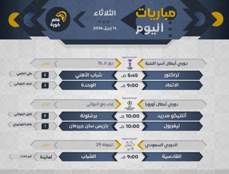 جميع المباريات بتوقيت 🇸🇦
