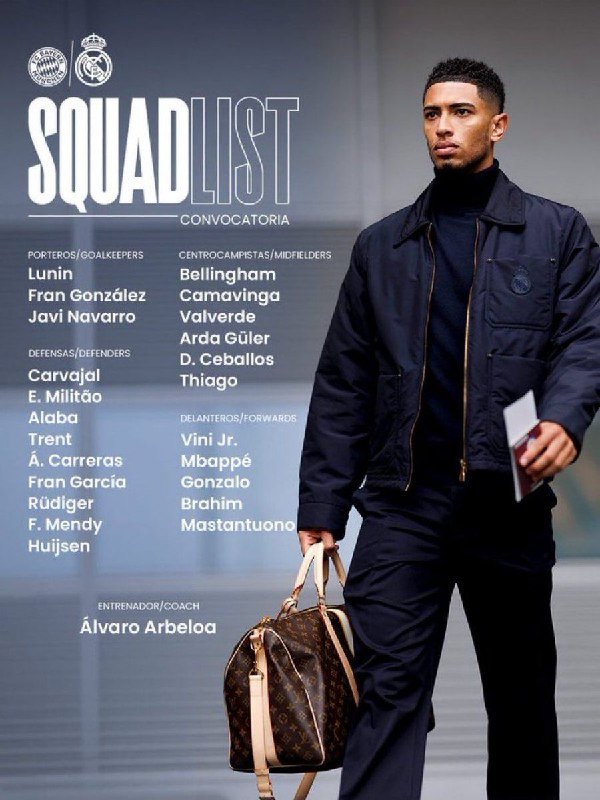 🚨🚨⚽️ • قائمة ريال مدريد الرسمية المستدعاة لمواجهة بايرن ميونيخ.