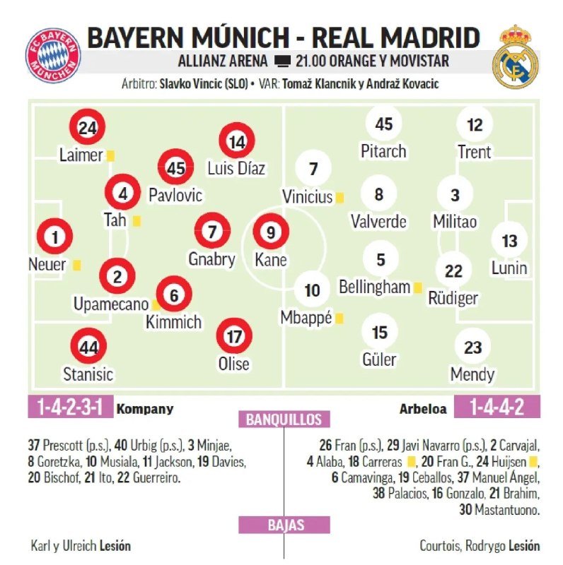 ⚽️🇩🇪 | التشكيلة المتوقعة للفريقين وفقًا لـ [الماركا ⚽️].
