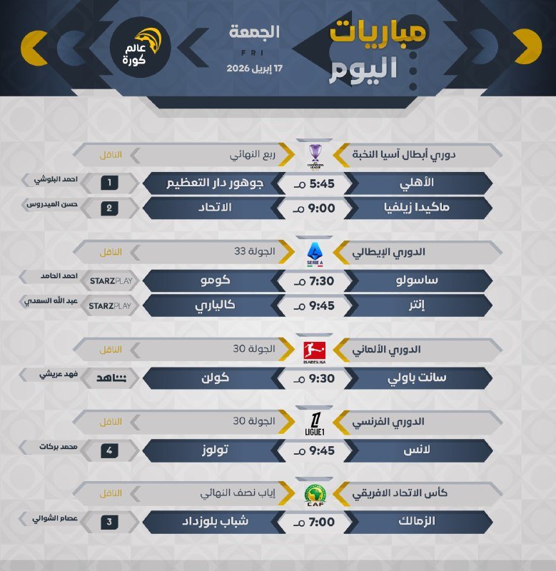 جميع المباريات بتوقيت 🇸🇦