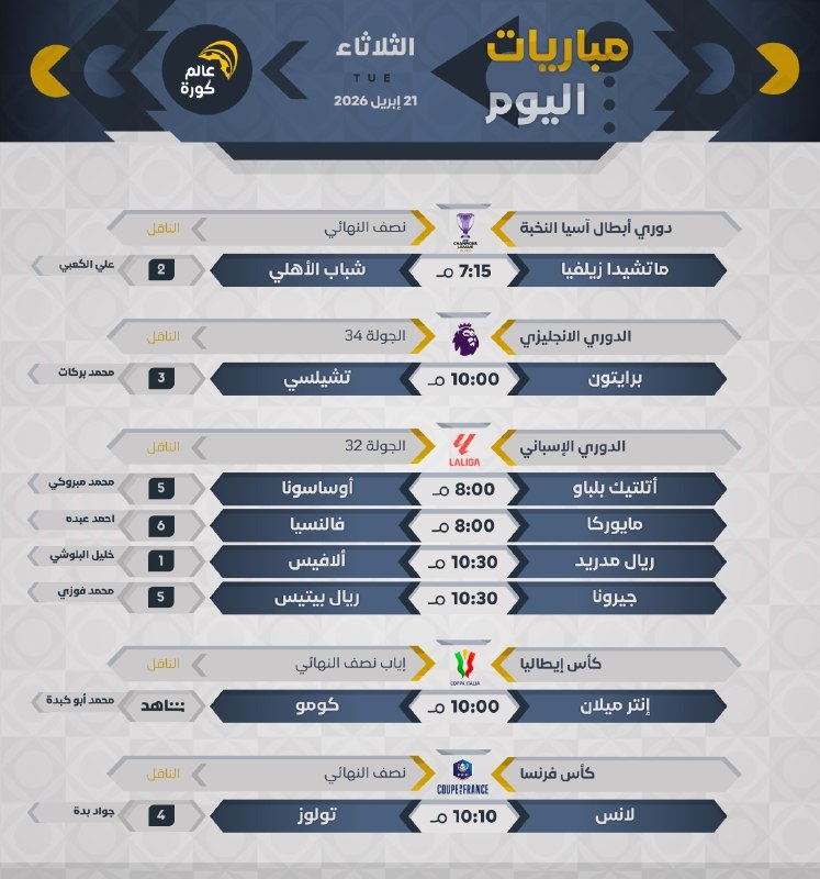 جميع المباريات بتوقيت 🇸🇦