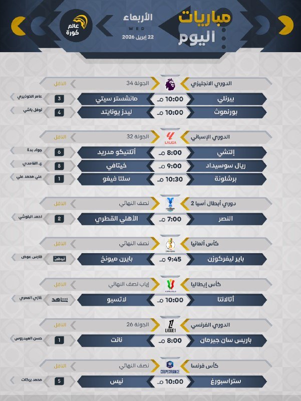 جميع المباريات بتوقيت 🇸🇦