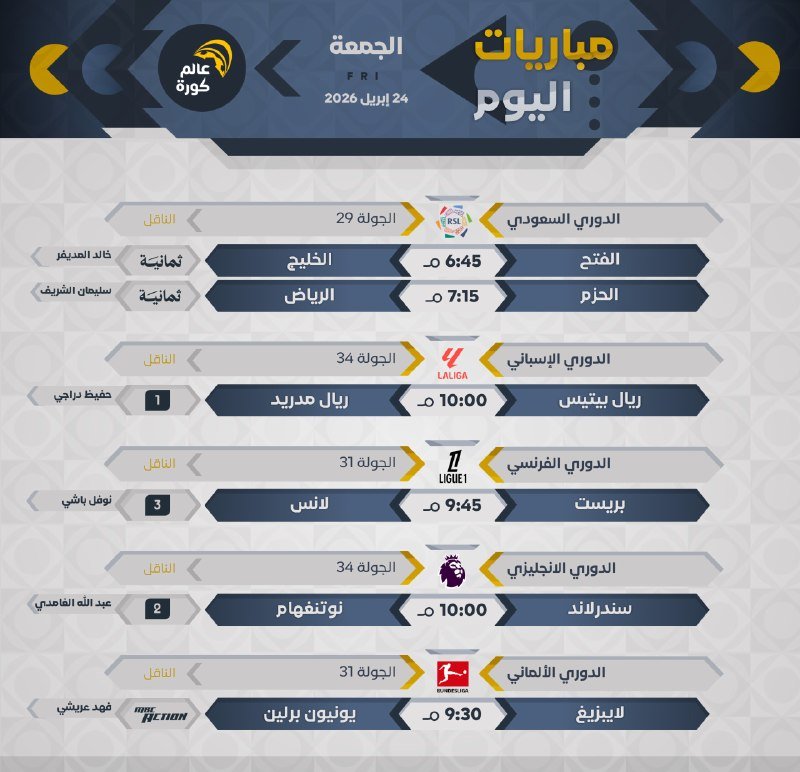 مباريات الجمعة…