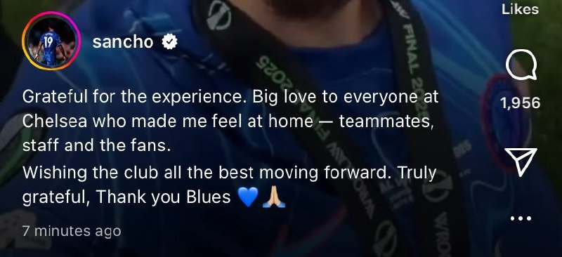 ممتن لهذه التجربة. محبة كبيرة لكل من في تشيلسي الذين جعلوني أشعر وكأنني في بيتي – من الزملاء والطاقم الفني إلى الجماهير، أتمنى للنادي كل التوفيق في المستقبل. ممتن حقًا، شكرًا لكم يا بلوز.
