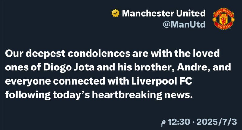 🚨🚨🚨🚨 • مانشستر يونايتد يقوم بتعزية ليفربول على وفاة ديوغو جوتا. تصفّح المقالات • مانشستر سيتي يقوم بتعزية ليفربول على وفاة ديوغو جوتا….دي خيا: الحياة أحيانًا تكون قاسية جدًا….