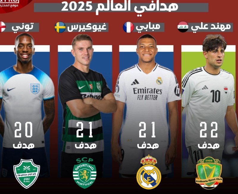 🚨🚨📊 • مهاجم الشرطة والمنتخب العراقي مهند علي يتصدر قائمة هدافي العالم لعام 2025 حسب الاتحاد الدولي للاحصاء والتاريخ. 🤩🤩🤩🤩🤩🤩🤩🤩🤩🤩🔥🔥🔥🔥🔥🔥🔥🔥🔥🔥 تصفّح المقالات جوزيه مورينيو:”كريستيان كيفو فهو أحد أبنائي لقد تعلّم من تجربتي لكنه أصبح الآن …بيان نادي ارسنال حول توماس بارتي : “انتهى عقد اللاعب يوم 30 يونيو.وبسبب الإجراء…