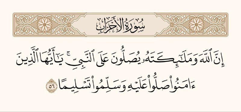 ﴿ إِنَّ اللَّهَ وَمَلائِكَتَهُ يُصَلّونَ عَلَى النَّبِيِّ يا أَيُّهَا الَّذينَ آمَنوا صَلّوا عَلَيهِ وَسَلِّموا تَسليمًا ﴾
