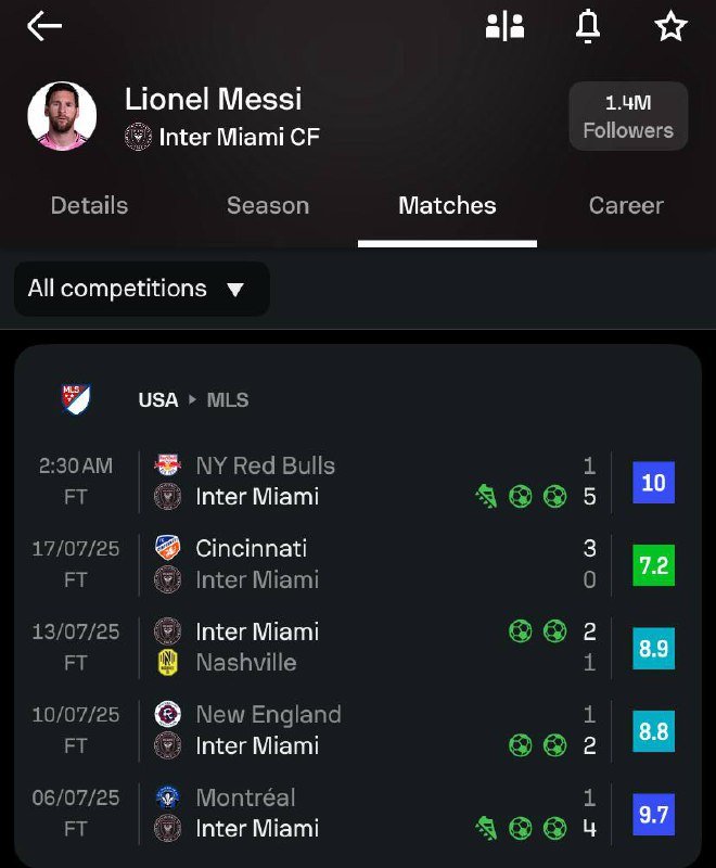 • الأسطورة ميسي يتحصل على تقييم 10 حسب Sofascore. …