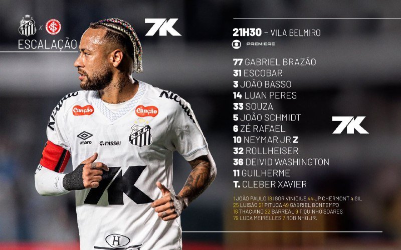 — نيمار جونيور أساسي في تشكيلة سانتوس ضد إنترناسيونال في الجولة 16 من الدوري ال…