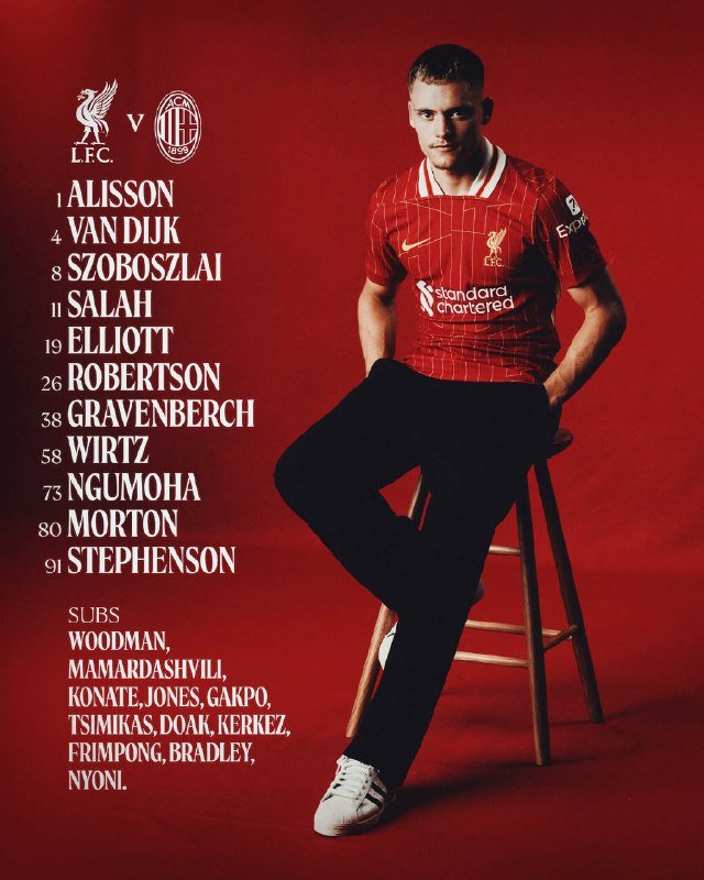 🚨🚨⚽️• تشكيلة ليفربول الرسمية لمواجهة ميلان وديًا.