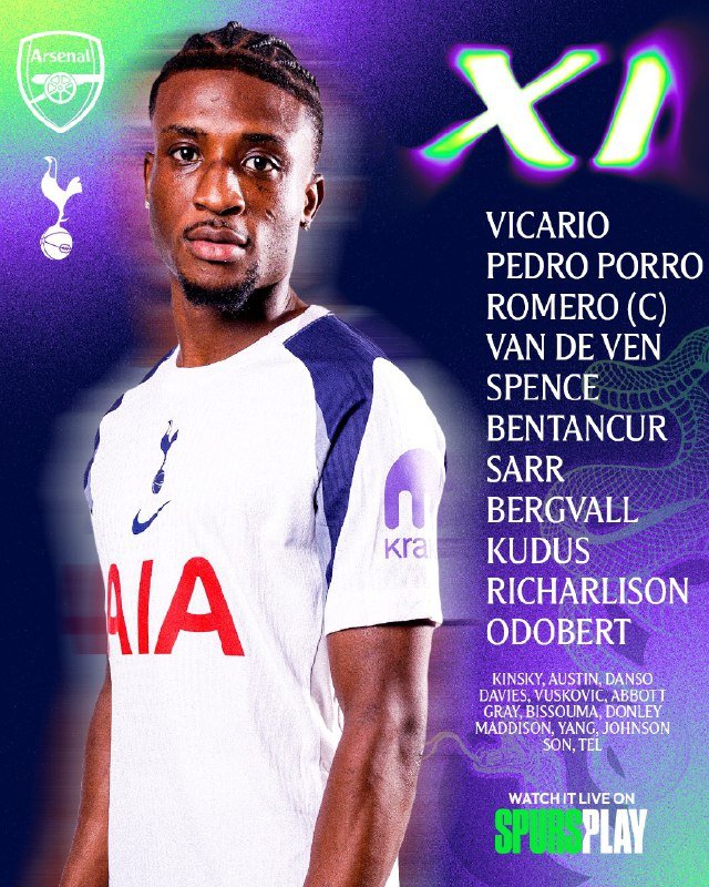 🚨🚨⚽️• تشكيلة توتنهام هوتسبير الرسمية لمواجهة آرسنال وديًا.