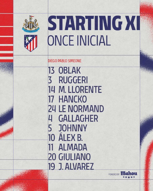 🚨🚨⚽️• تشكيلة الفريقين الرسمية [نيوكاسل يونايتد × أتلتيكو مدريد]:⏰ — تنطلق المُباراة في الساعة السادسة مساءً بتوقيت مكة المكرمة. تصفّح المقالات • دخول: شاو & ماينو & دالو & دي ليخت. • خروج: هيفن & كاسيميرو &…• لقب كأس الإمارات جاهز لمواجهة أرسنال أمام أتلتيك بلباو وديًا. …