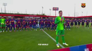 تصفيق حار لتير شتيغن لحظة قوله: فيسكا بارسا، فيسكا كتالونيا. تصفّح المقالات تير شتيغن []: — مساء الخير جميعًا. شكرًا لحضوركم. شكرًا جزيلًا لحضوركم. — ج…تير شتيغن []: — نشكر جميع لاعبي الفريق على جهودهم العام الماضي. — يعلم الجم…