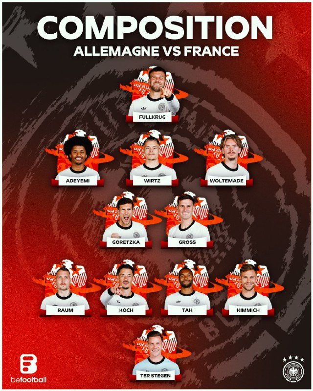 🚨🚨• الرسم التكتيكي للتشكيلة 🇩🇪. تصفّح المقالات كم مساهمة اليوم ؟…• تشكيلة ألمانيا الرسمية لمواجهة فرنسا….