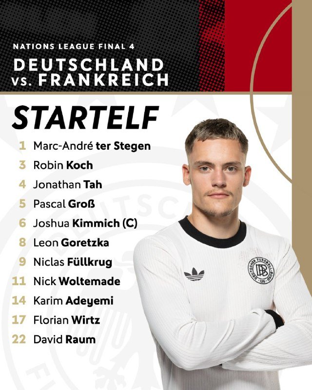🚨🚨🇩🇪 • تشكيلة ألمانيا الرسمية لمواجهة فرنسا.