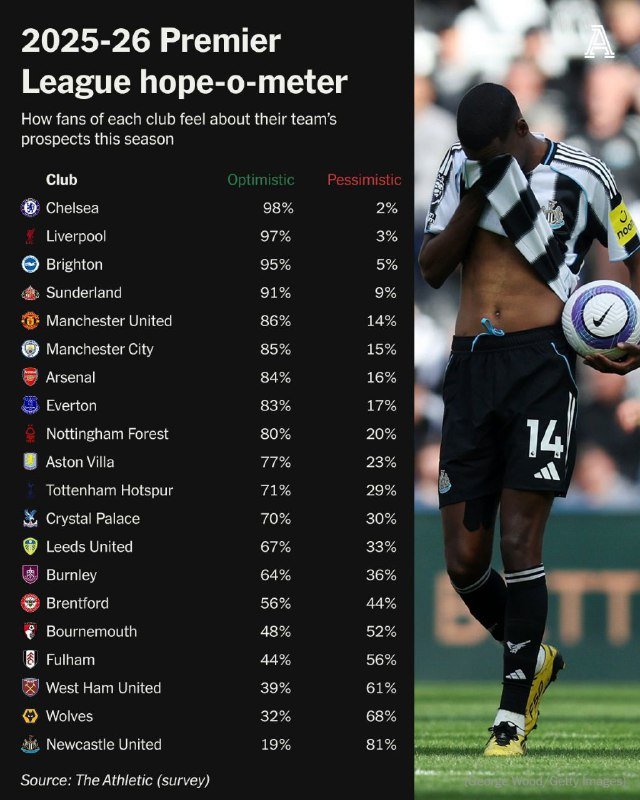 🚨📊ــ نشر موقع ذا اثليتك استبيان عن نسبة تفائل مشجعي الأندية حول الموسم الجديدة من البريميرليغ 2025/26. • مشجعو تشيلسي الأكثر تفاؤلًا 🔝• مشجعو نيوكاسل يونايتد الأقل تفاؤلًا. ❌ تصفّح المقالات • فنربخشة سيواجه بنفيكا في دور البلاي أوف لتحديد المتأهل إلى دوري أبطال أوروبا 2…عـــاجـــل – فابريزيو رومانو |– زاكاري أثيكامي إلى إيه سي ميلان، 𝙃𝙀𝙍𝙀 𝙒𝙀 𝙂𝙊!…