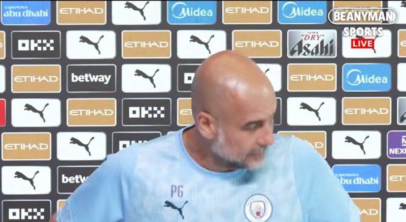 وصول بيب غوارديولا إلى المؤتمر الصحفي بعد تأخيره حوالي نصف ساعة. …