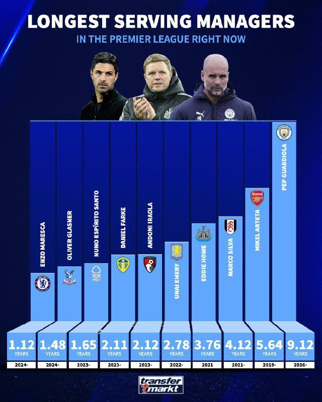 🚨🚨🚨📊 • أطول المدربين الحاليين بقاءً مع فرقهم في البريميرليغ [⚽️]..