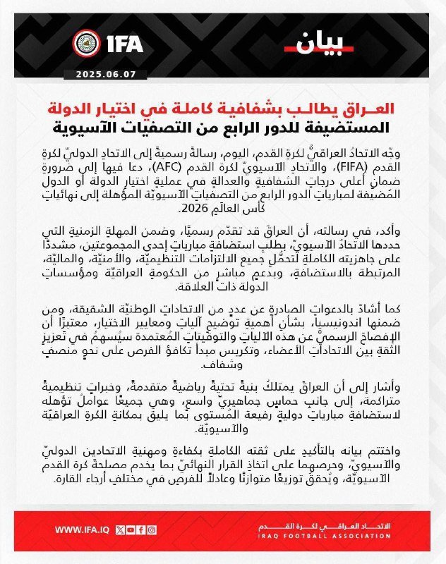🚨🚨🚨🚨 بيان رسمي من الإتحاد العراقي لكرة القدم | 🇮🇶الإتحاد العراقي غاضب بسبب اختيار دولة الأردن للعب المباراة ويطالب بالحيادية بين المنتخبات. تصفّح المقالات عـــاجــل – الاس |تقديم ترينت ألكسندر أرنولد يوم الأربعاء….• سباليتي ترك المؤتمر الصحفي بعد سؤاله ان كان يشعر بالخيانة!…